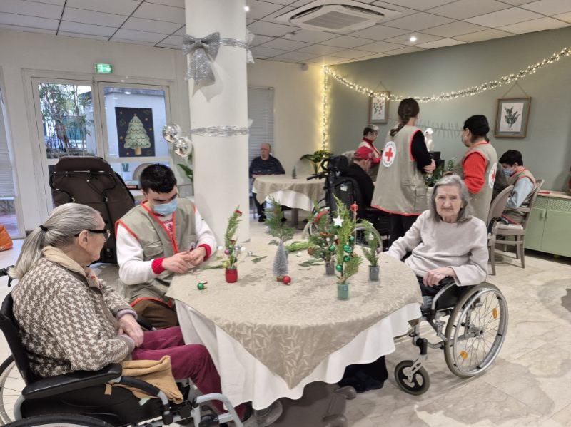 Aujourd’hui, la résidence a vécu un beau moment de créativité et de partage à l’occasion de la création des centres de table qui viendront décorer nos tables de Noël. Les résidents ont repris avec plaisir les compositions réalisées dimanche dernier avec les intervenants de la Croix-Rouge, afin de les sublimer et de les transformer en magnifiques centres de table festifs.