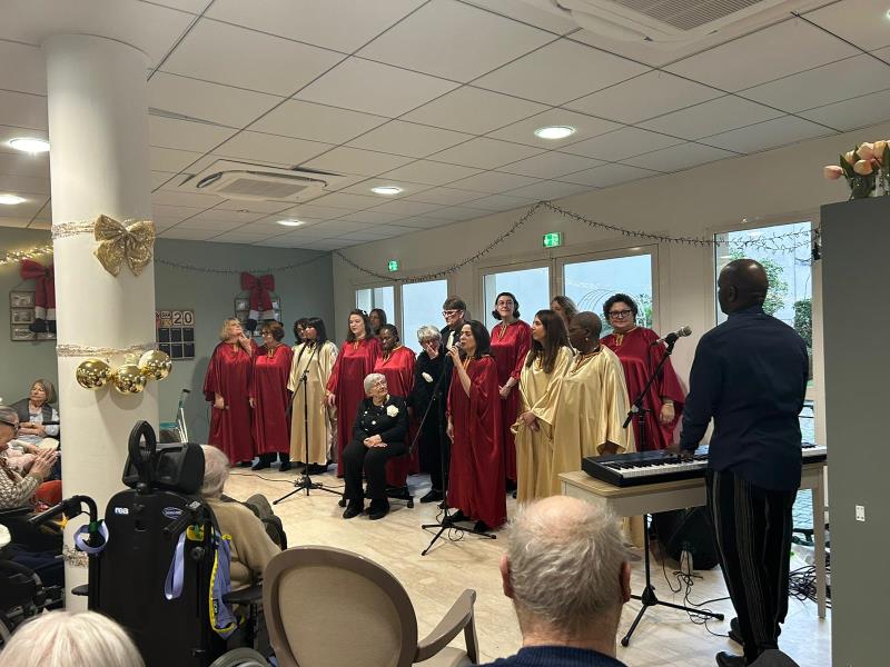 Ce samedi, la résidence a vécu un moment mémorable lors de notre spectacle et goûter de Noël. Nous avons eu le plaisir d’accueillir les choristes de la chorale Gospel Heart, qui nous ont émerveillés avec leurs magnifiques chants de Noël et leurs mélodies traditionnelles.