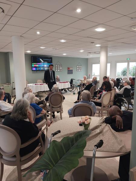 Jeudi, nous avons eu le plaisir de recevoir deux candidats, Monsieur Joackim Gacomoni et Monsieur Valentin Narbonais, venus nous présenter leur programme. Cette rencontre a été l’occasion d’un moment d’échange et de partage très apprécié par les résidents.